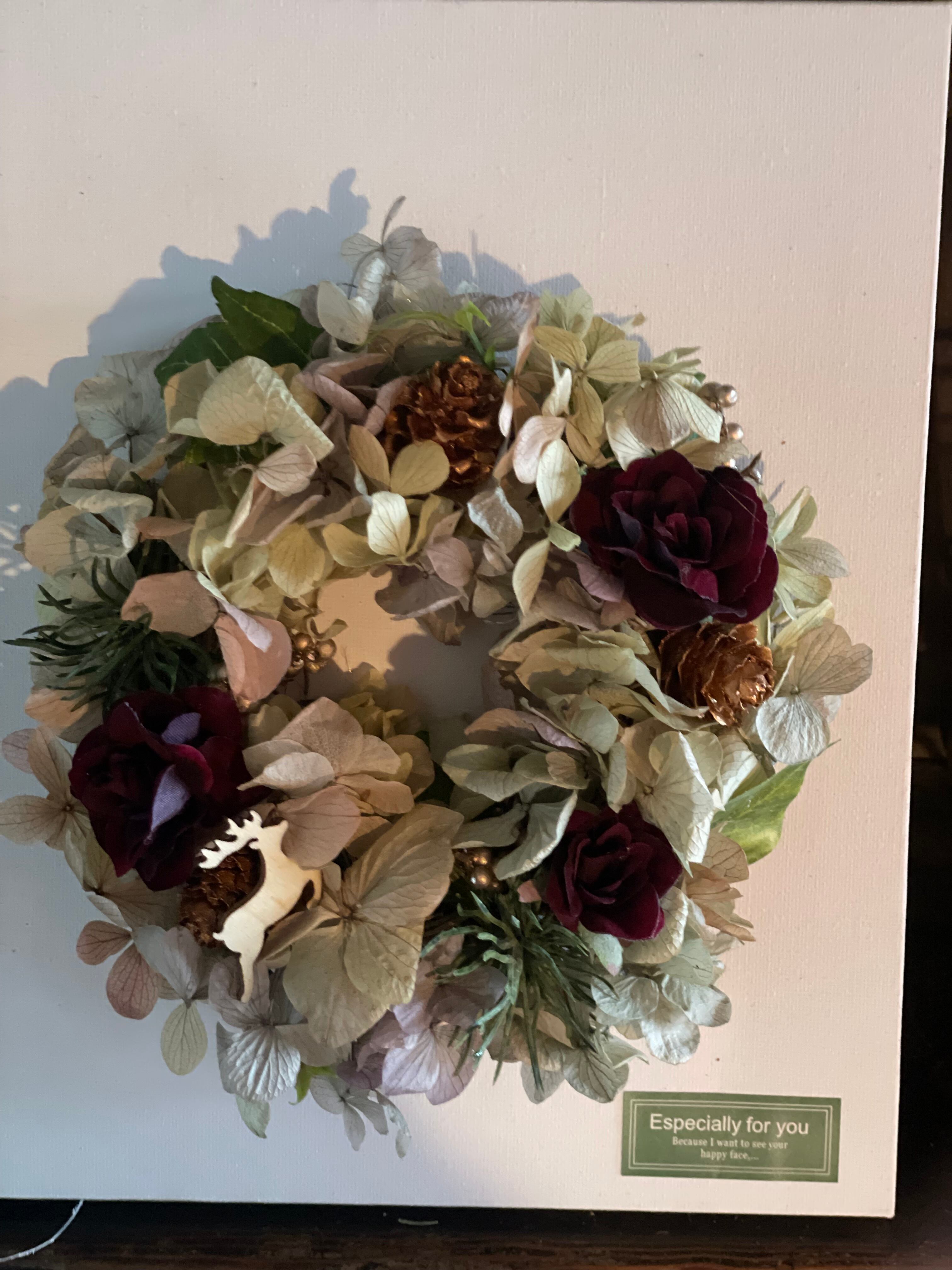 こちらはプリザーブドフラワーを使用し作成したリースです。