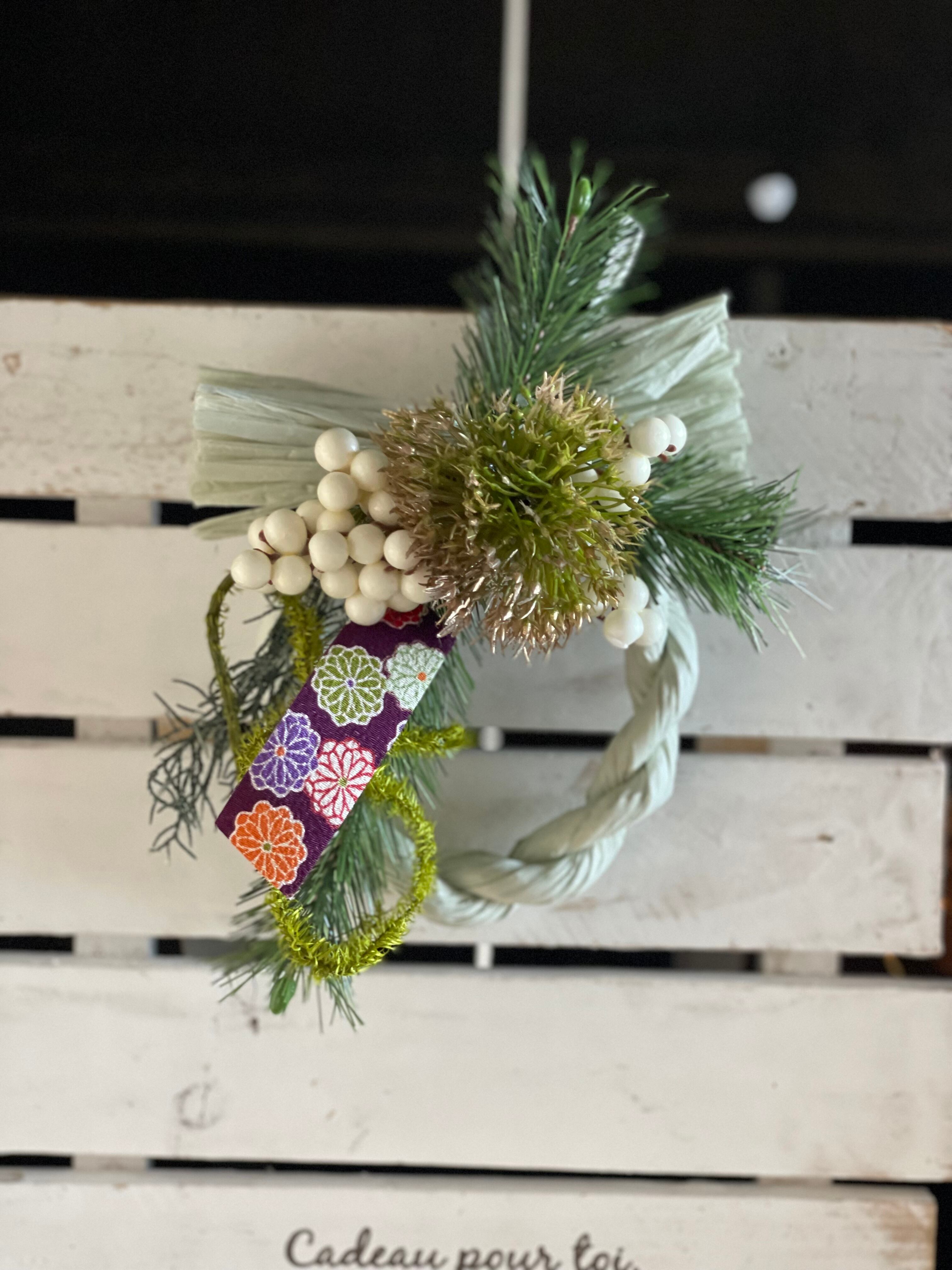こちらはアーティフィシャルフラワーを使用し作成した〆縄です。