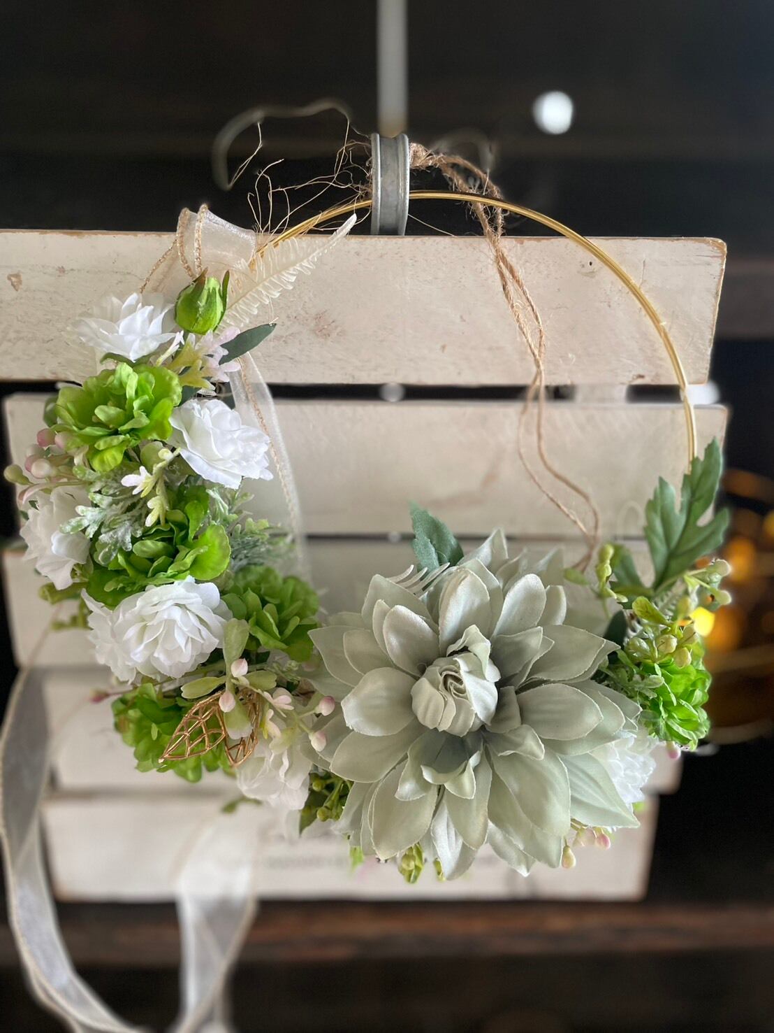 「こちらはアーティフィシャルフラワーを使用し作成したリースです。