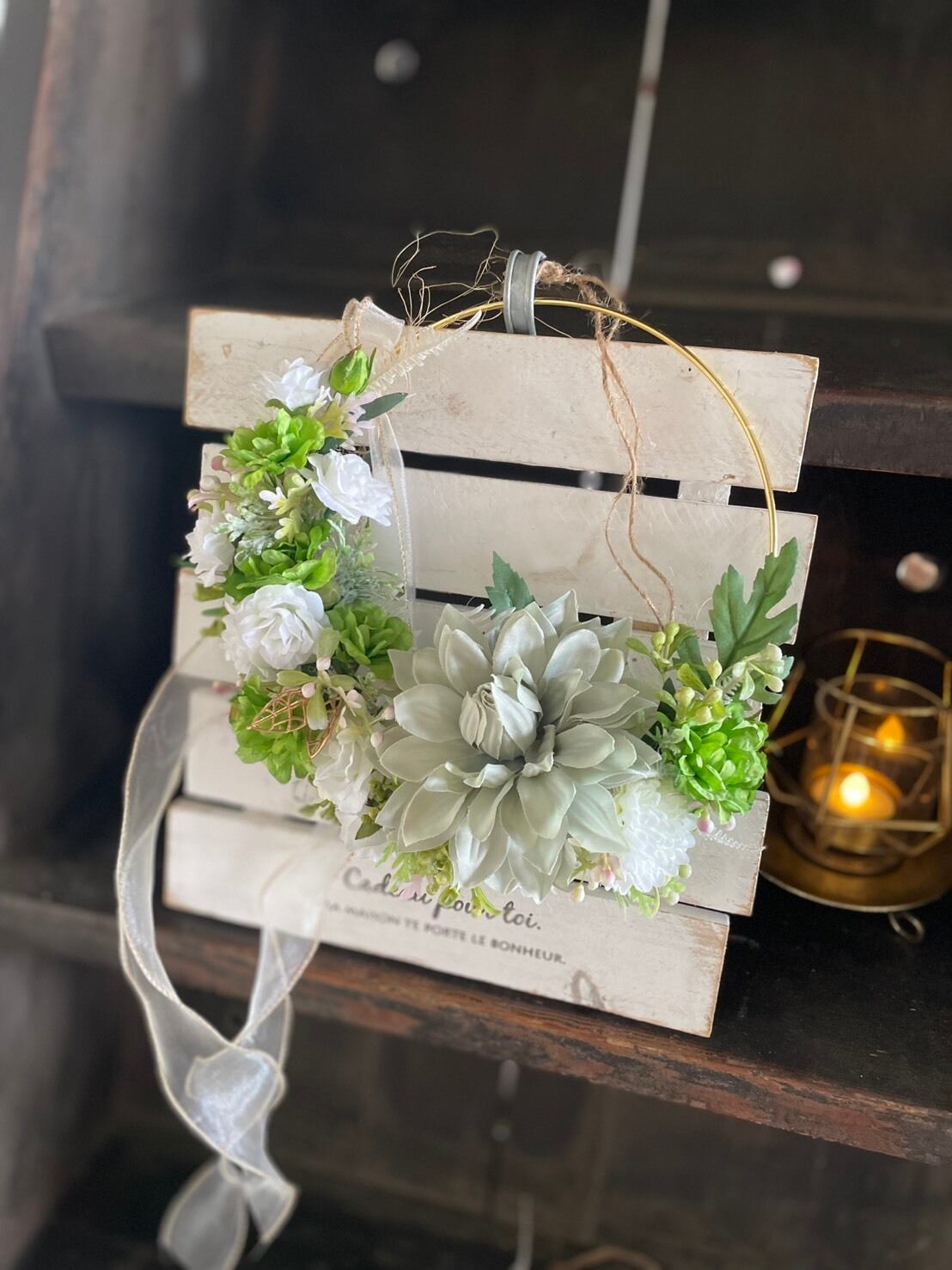 こちらはアーティフィシャルフラワーを使用し作成したリースです。
