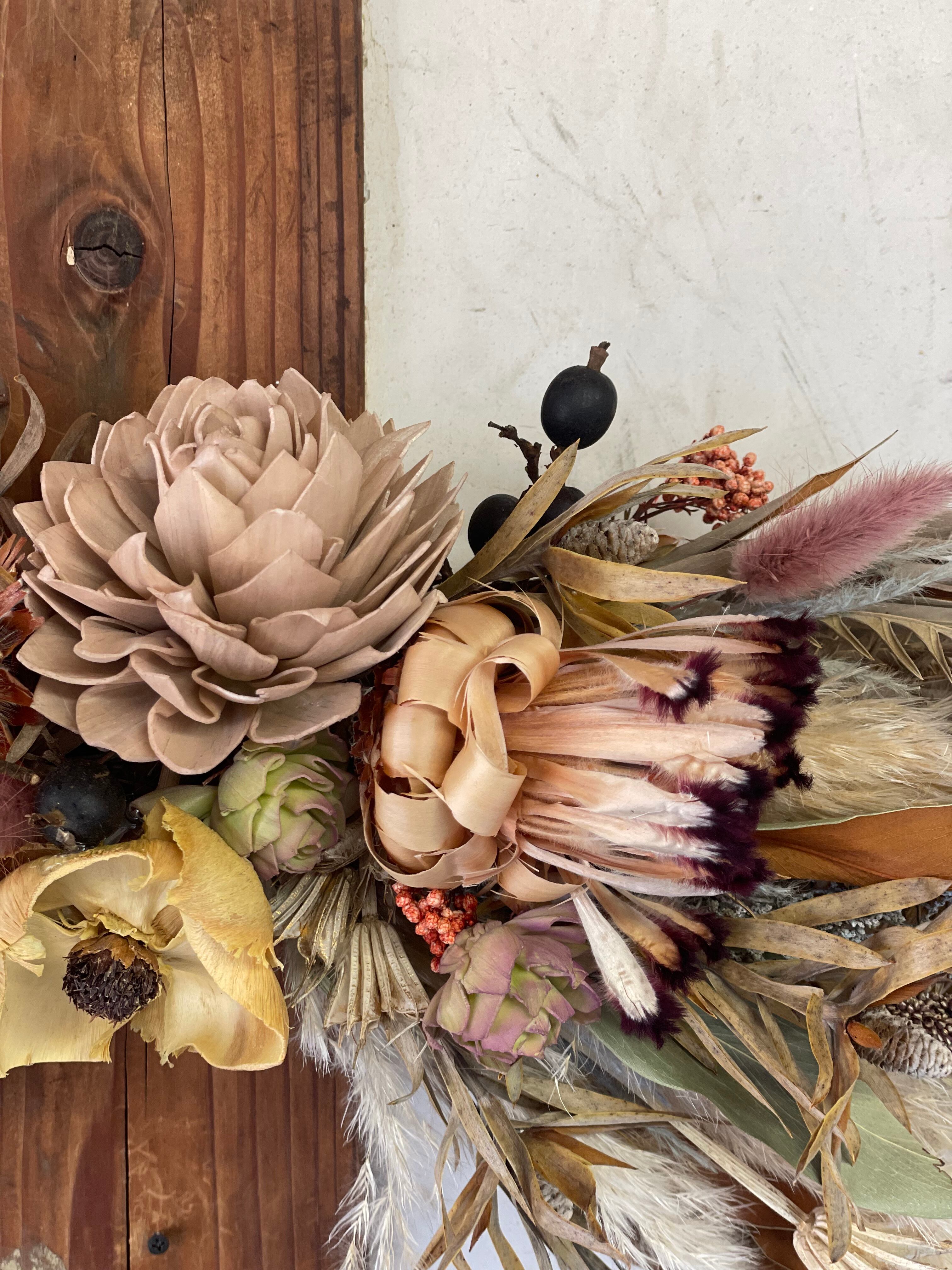 ダリア、フィリカ、パーマフラワー、プロテア、ラグラス、ブラックベリー、パンパスグラス等