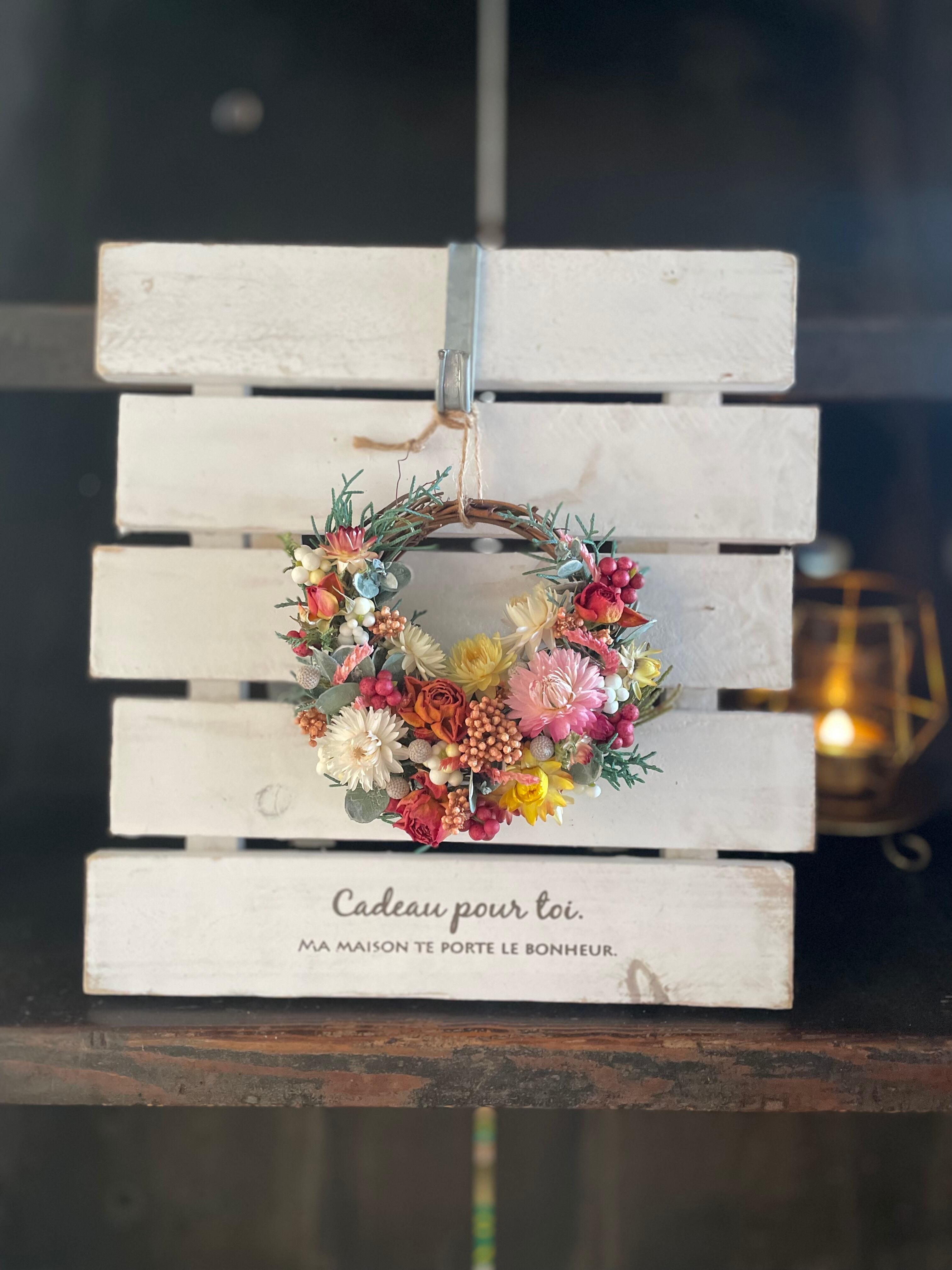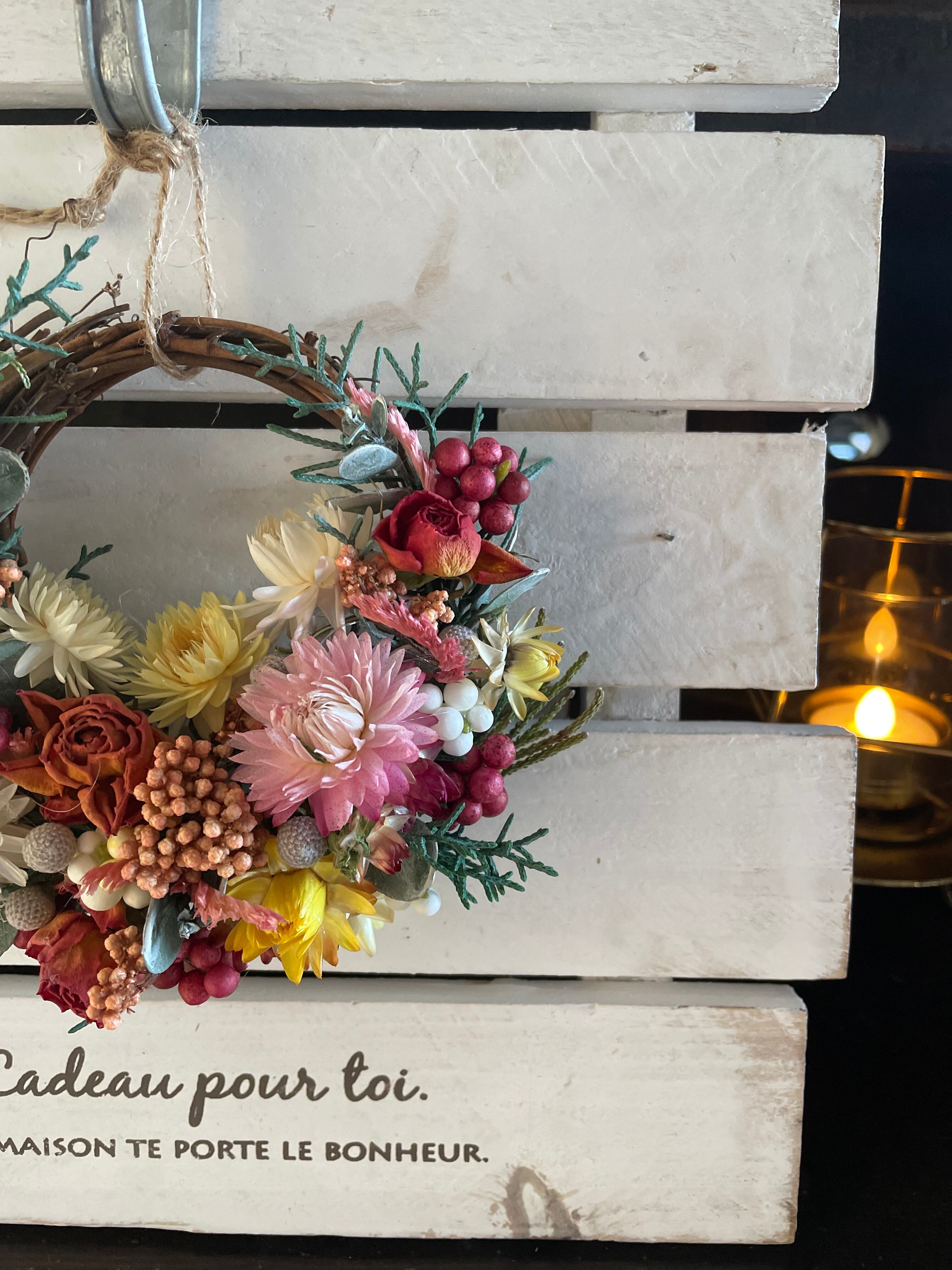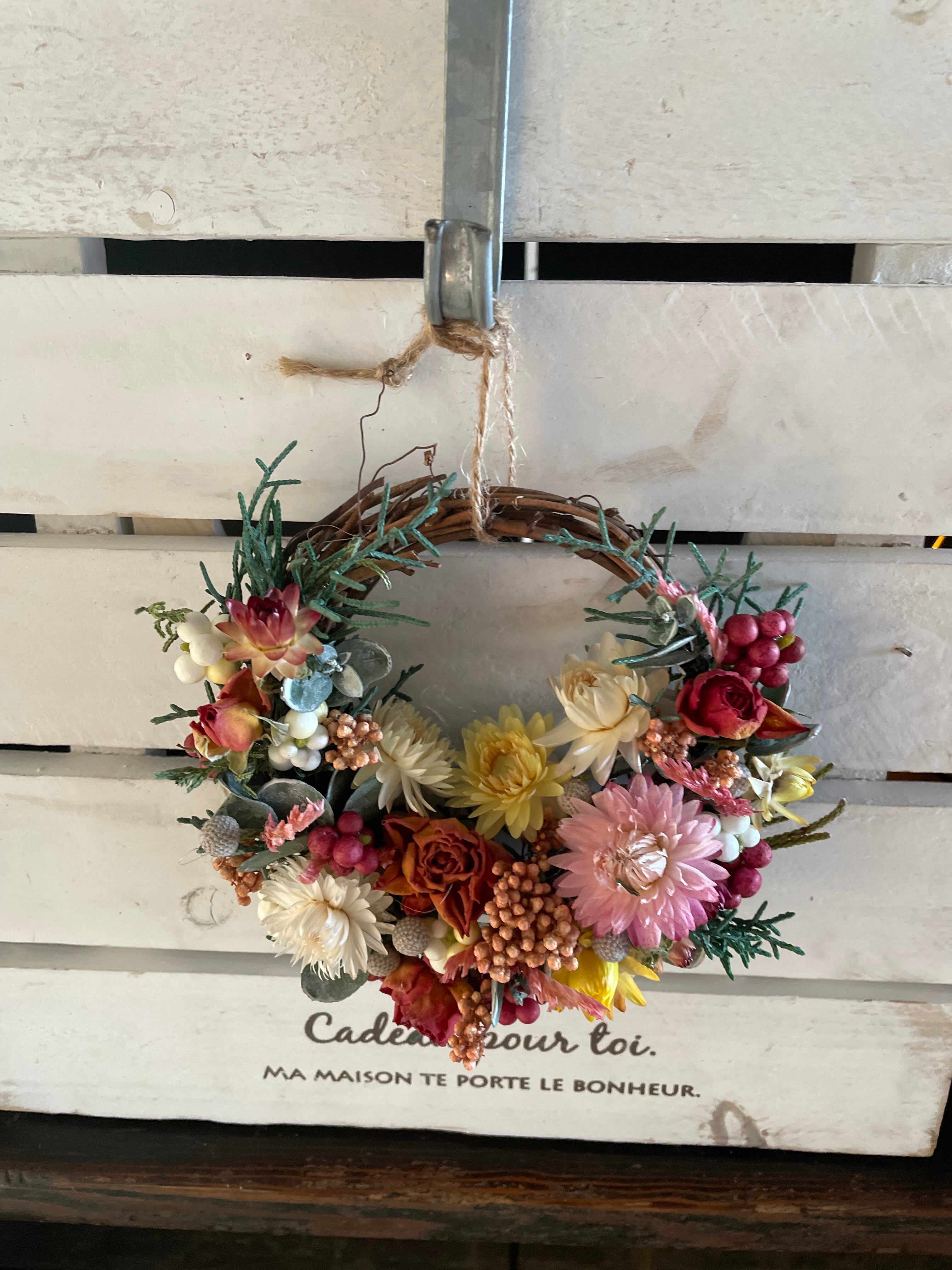 こちらはドライフラワーを使用し作成したハーフリースです。
